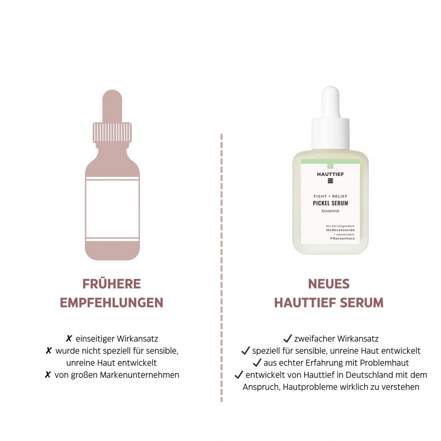 Viele herkömmliche Anti-Pickel-Produkte setzen auf aggressive Inhaltsstoffe, die deine Hautbarriere schwächen und Entzündungen sogar verschlimmern können.