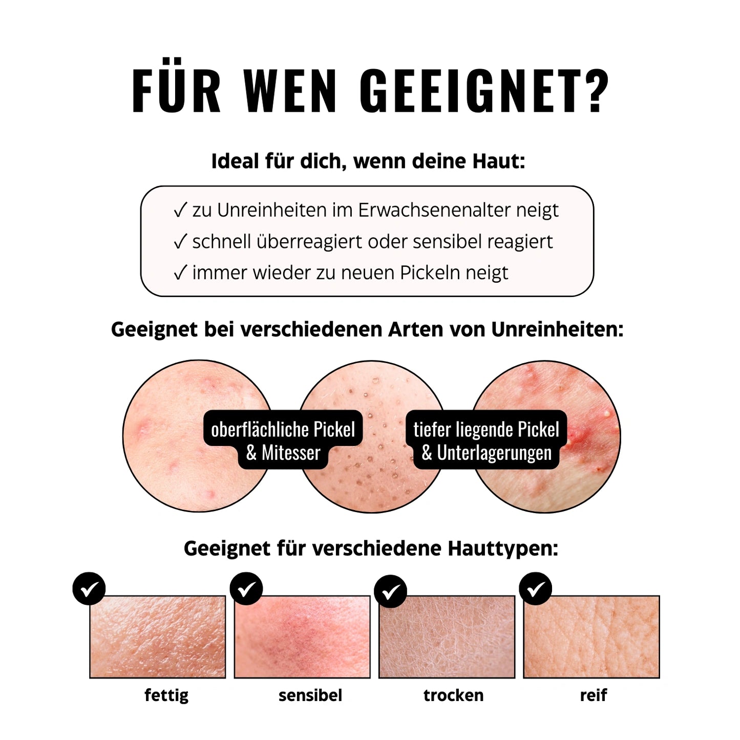 ✓ löst Pickel, Mitesser und Unterlagerungen an der Wurzel – bevor sie überhaupt sichtbar werden
