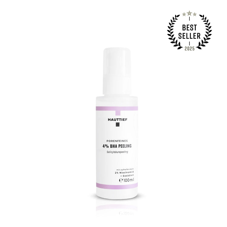 Professionelle Ausreinigung trifft sanfte Hightech-Pflege: Das porenfeine 4 % Betain-BHA Peeling von HAUTTIEF ist inspiriert von den besten Kosmetikbehandlungen – nur eben bequem von zu Hause und ganz ohne monatliche Kosten.